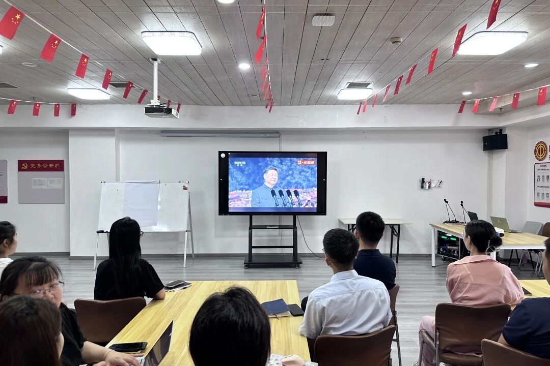 9月3日上午,安徽淘才人力资源服务有限公司组织全体员工集体观看纪念中国人民抗日战争暨世界反法西斯战争胜利80周年阅兵活动,共同见证这一具有重大政治意义和深远历史意义的庄严时刻。